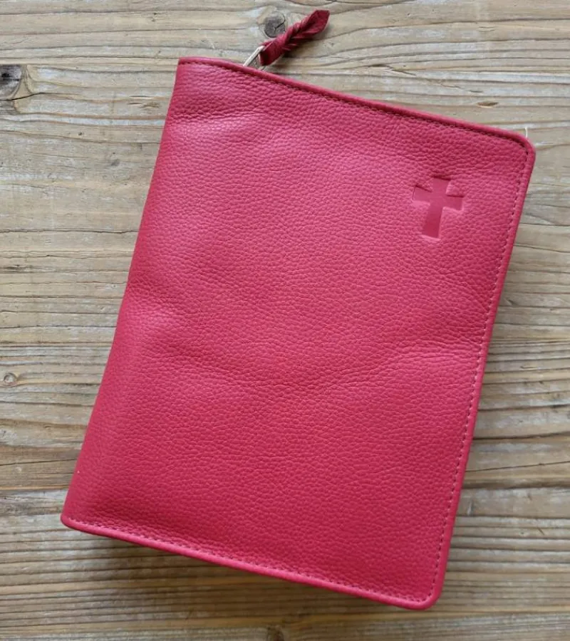 Flot bibelomslag i ægte kalveskind. Passer til mindre bibler.