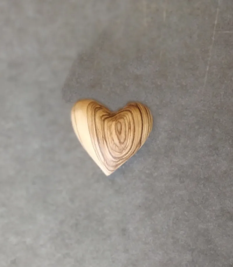 Fint hjerte udskåret i oliventræ. Den er rigtig rar at røre ved.
