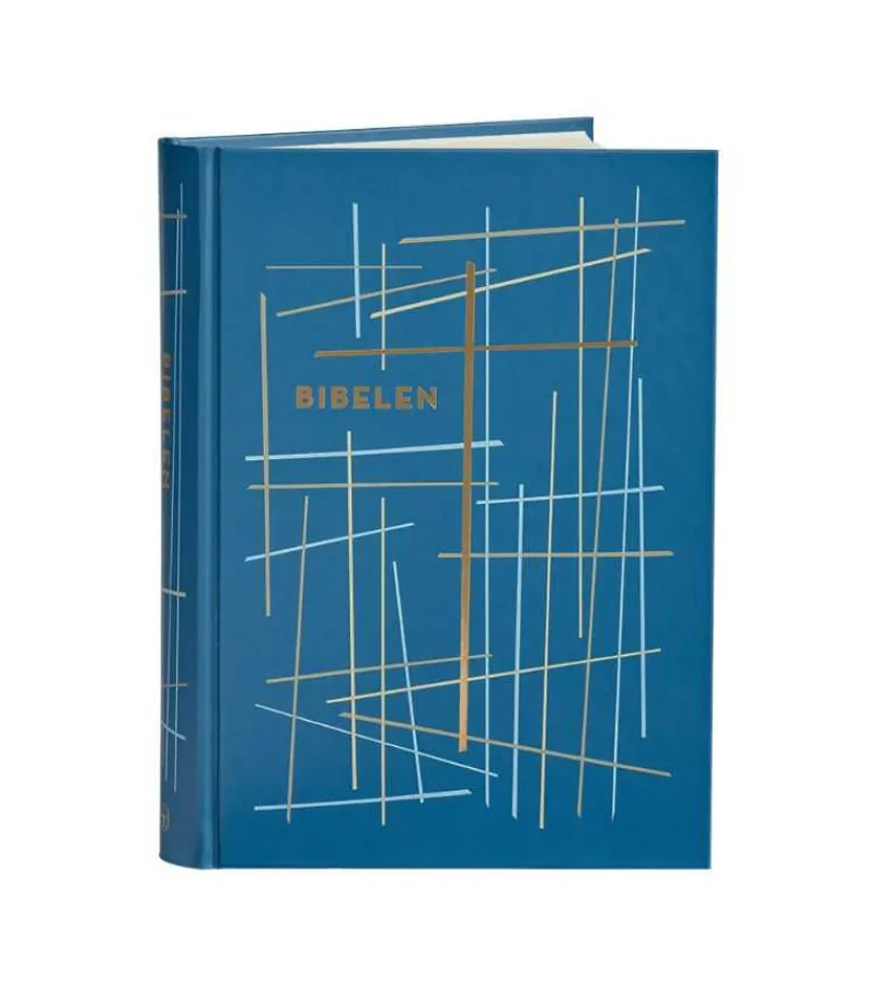 Smuk og anvendelig udgave af Bibelen indbundet i fast bind. Omslagsmotivets streger danner på forsiden et kors, der sammen med titlen fremhæves med guldpræg.