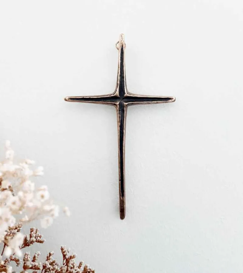 Enkel og smuk bronzekors til hjemmet. Hæng den i din entre eller køkkenet.