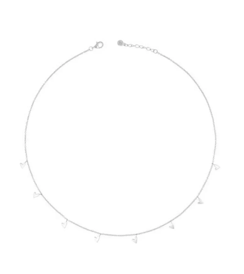 Fin, elegant og helt enkle halskæde med 8 små hjerte-charms.