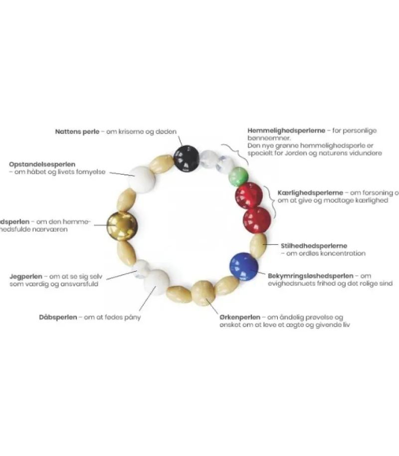 Hver perle skal minde om at livet hører tæt sammen med Gud. Armbåndet kan du ha’ med dig uanset hvor du er og bruge det når du har lyst til bøn og meditation.