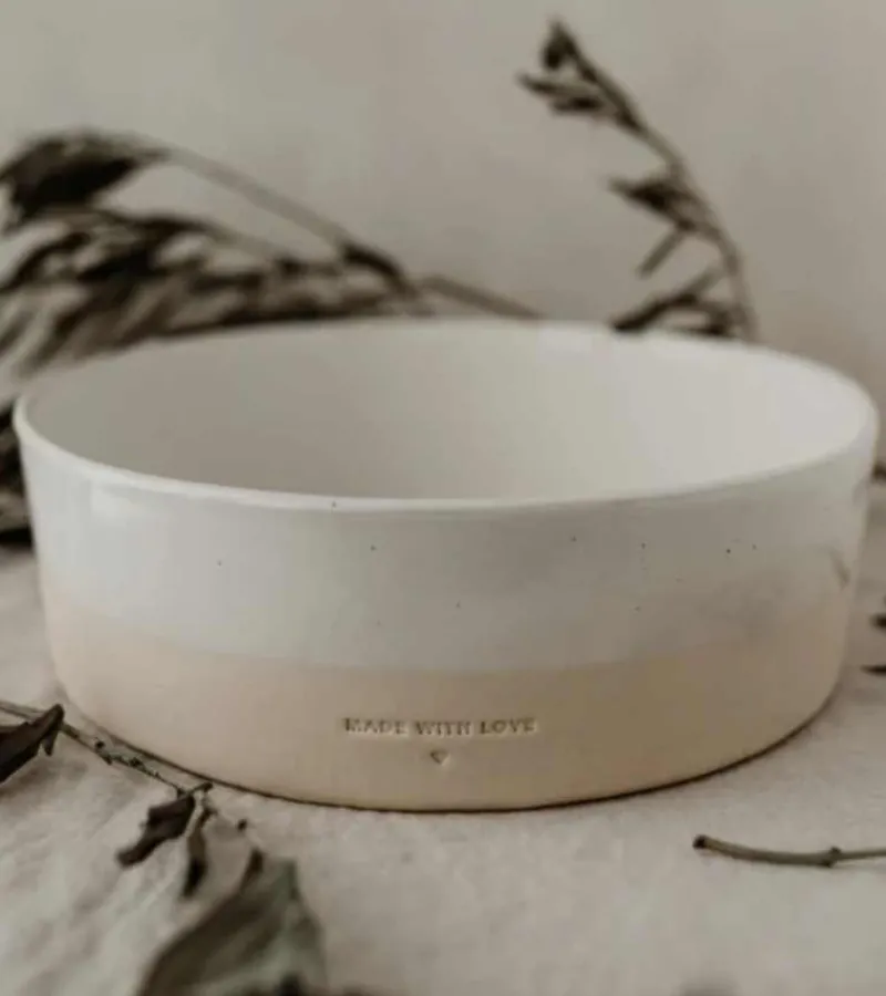 Vi har lagt meget hjerte og sjæl i en ny kollektion, som vi har udviklet i form, tone, glasering og design. Et lille sted i Portugal producerer denne vidunderlige samling kærligt i hånden og er en fantastisk ny følgesvend på vores kreative vej. Vores skåle får hjerter til at banke hurtigere for dem, der elsker individualiteten af ler og glasur, fordi hver enkelt skål har sit eget unikke præg. Det minimalistiske design og de naturlige farvenuancer afrundes af den bølgede form. Vi er forelskede, fulde af ren glæde og kan ikke vente med at se vores nye Made with Love skål i dine hænder!
