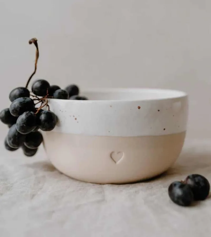 Vi har lagt meget hjerte og sjæl i en ny kollektion, som vi har udviklet i form, tone, glasering og design. Et lille sted i Portugal producerer denne vidunderlige samling kærligt i hånden og er en fantastisk ny følgesvend på vores kreative vej. Vores skåle får hjerter til at banke hurtigere for dem, der elsker individualiteten af ler og glasur, fordi hver enkelt skål har sit eget unikke præg. Det minimalistiske design og de naturlige farvenuancer afrundes af den bølgede form. Skålens højdepunkt er den blinde prægning i form af et hjerte. Vi er forelskede, fulde af ren glæde og kan ikke vente med at se vores nye 15 cm hjerteskål i dine hænder!