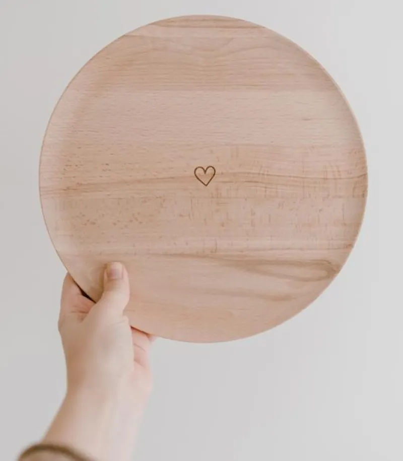 Leder du efter en særlig gave? Så er dette fad en super flot gave at give. Den er lavet af bøgetræ i høj kvalitet med et fint hjerte i midten.
