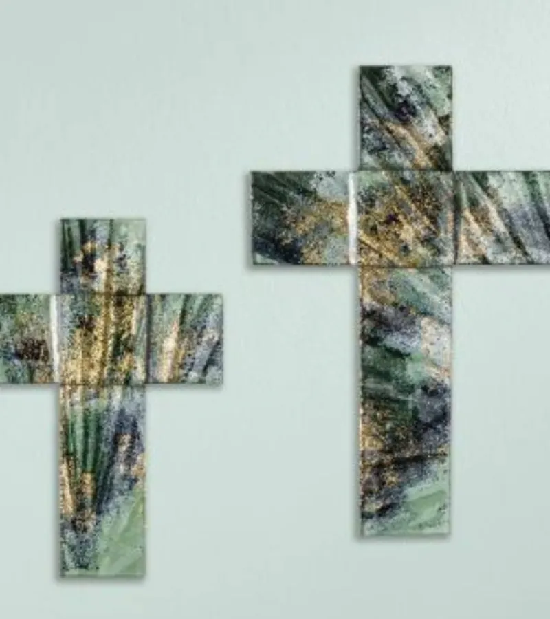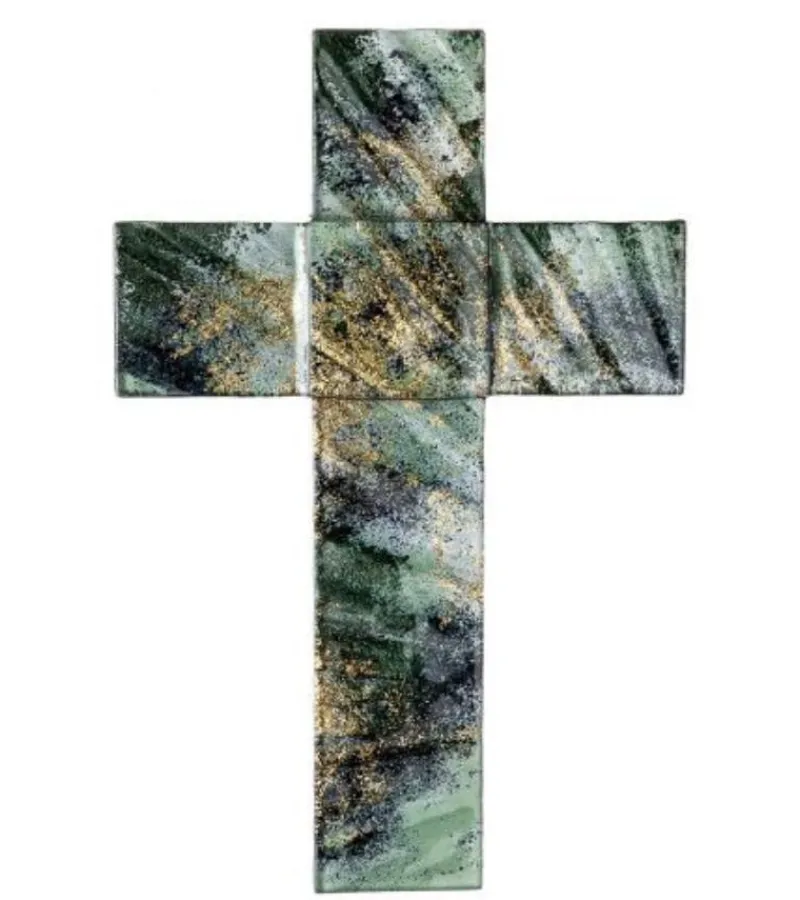 Farverne er grønlige og blålige mos-farver, mørke nuancer og guld.