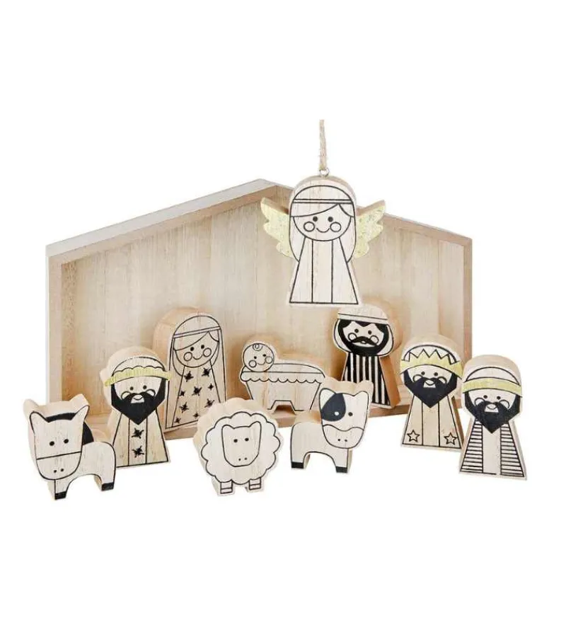 Krybbe-figuerne er lavet i flot og naturligt træ.