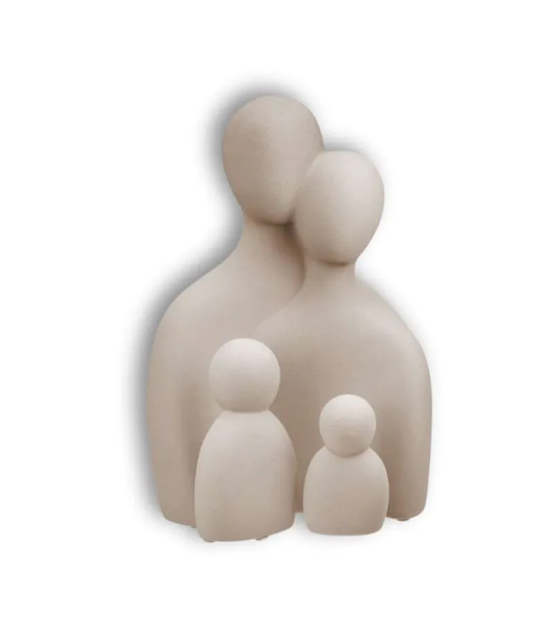 Virkelig flot skulptur af mand og kvinde med to børn.