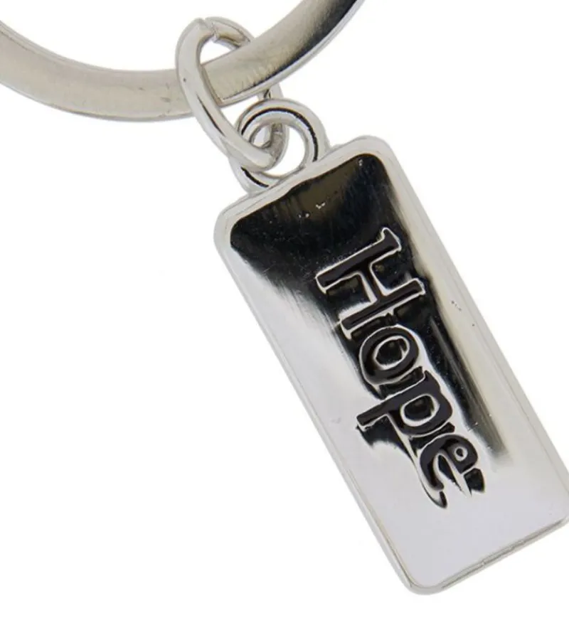 Minde dig om Jesus, og om at der er et HÅB (hope) og så er der en smart karabin-klemme til eksempelvis en indkøbsmønt eller en hurtig lånenøgle mm.