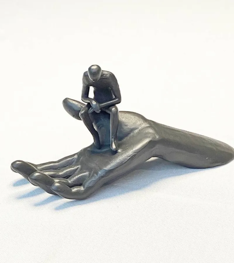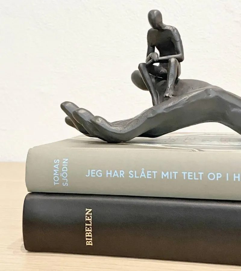 Denne fine skulptur siger så mange ting! Den er en påmindelse om at lade sige lede af Gud. Eller måske føler du at livet er svært, og ensomt, men glemmer at se, hvor du er og at du er på vej i en retning ledet af en hånd.