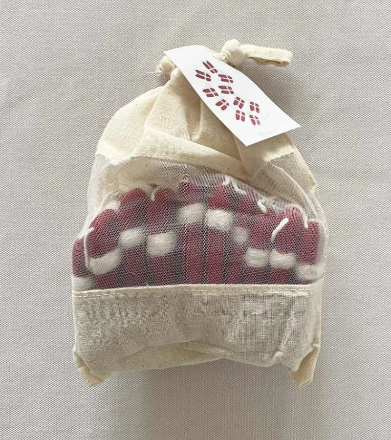 Den kommer i en fin bomuldspose, så den er let at pakke væk.