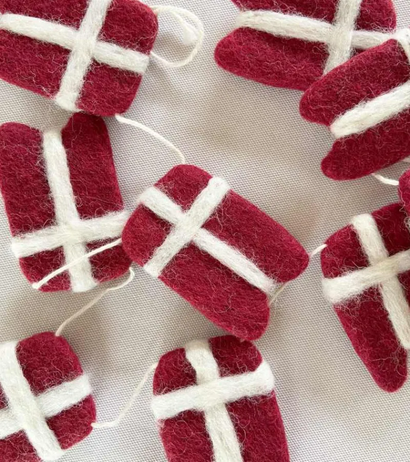 Pynt op til fødselsdagen med denne skønne flag gurilande med 10 små dannebrogsflag i filtet uld fra Gry & Sif.