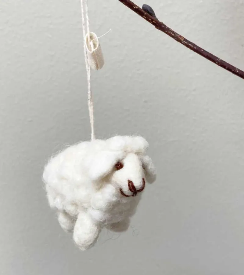 Den er håndlavet i filtet uld og kommer med en snor, så den kan hænge på en gren.