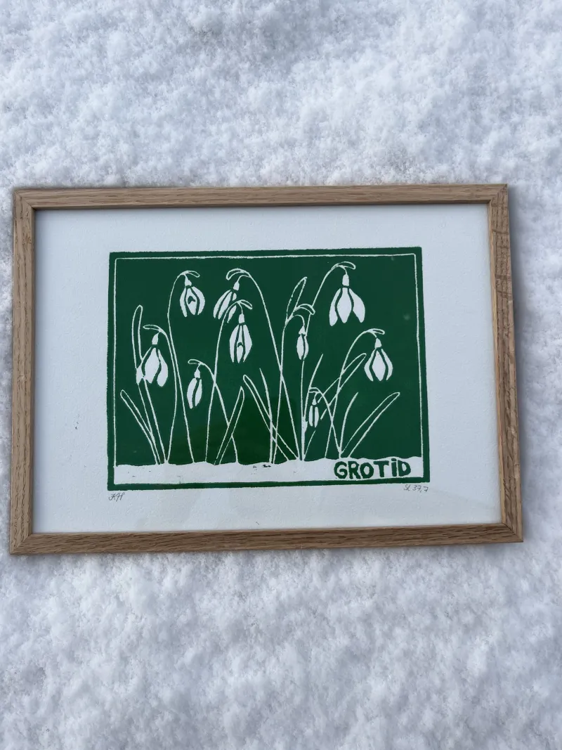 Dette smukke linoleumstryk er håndlavet af sognepræst Inge Marie Kirketerp Hansen på kraftigt papir.