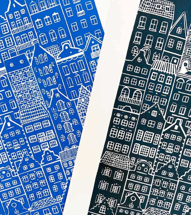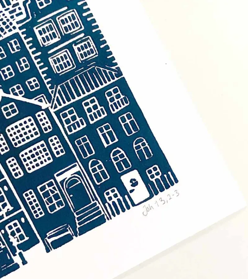 Dette smukke linoleumstryk er håndlavet af sognepræst Inge Marie Kirketerp Hansen på kraftigt papir.