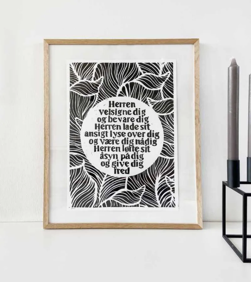 Smukt linoleumstryk med velsignelsen til dit hjem.