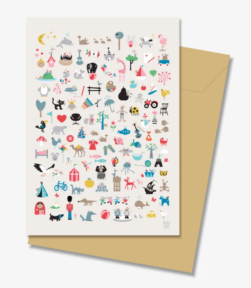 Med dette Find KAI kort er der både plads til en hilsen og en lille leg, hvor man skal finde den lille fyr KAI. Hvor gemmer han sig? Eller hvor er katten osv.