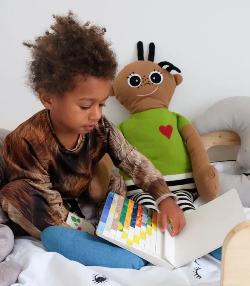 KAI er strikket i jacquardvævet bomuld med håndbroderede detaljer og fyldt op med blødt fiberfyld.