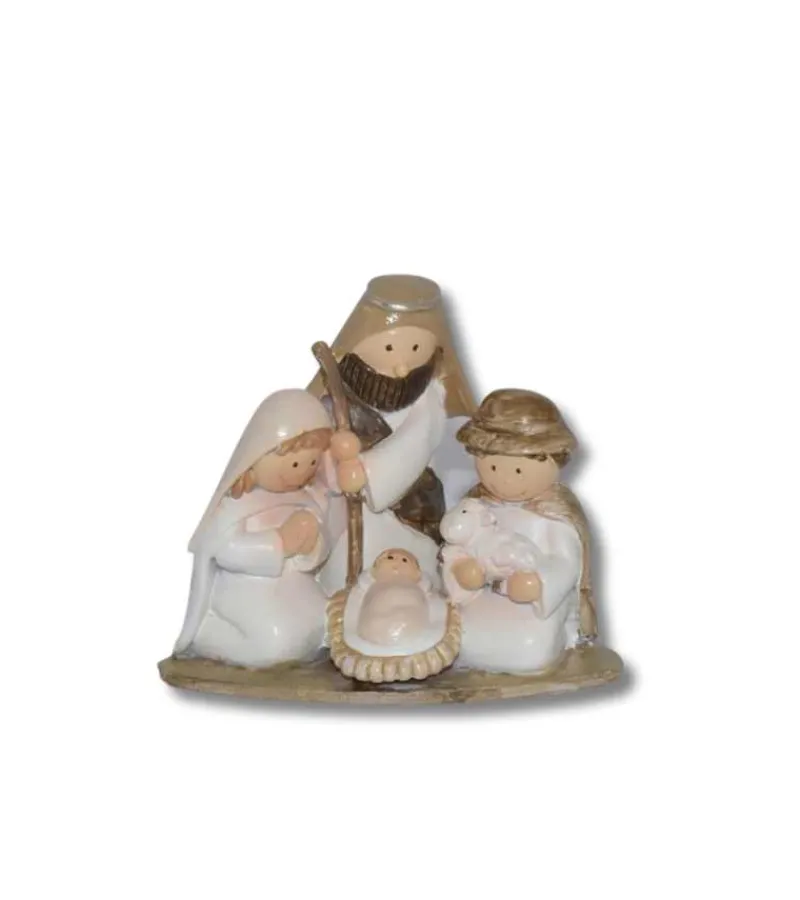Den sødeste lille julekrybbe med Jesusbarnet i krybben sammen med Maria og Josef – og en hyrde.