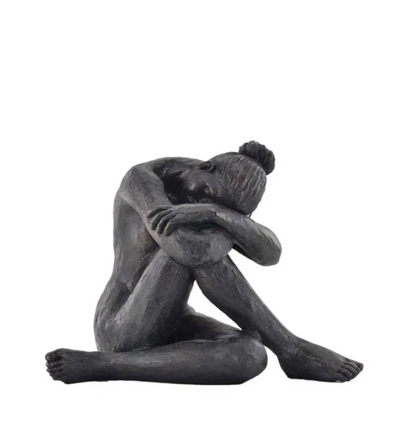 Elegant figur af en smuk kvinde, der sidder eftertænksom og tænker over livet. Virkelig dekorativ i et bed eller på terrassen.
