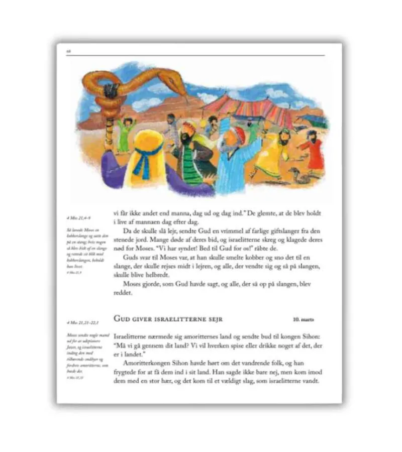 Bogen er delt op i 365 stykker og bagest findes et leksikon med små artikler om den kulturelle og historiske baggrund for bibelhistorierne.