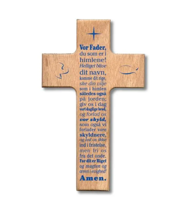 Giv dette trækors i bøgetræ med Fadervor printet på.