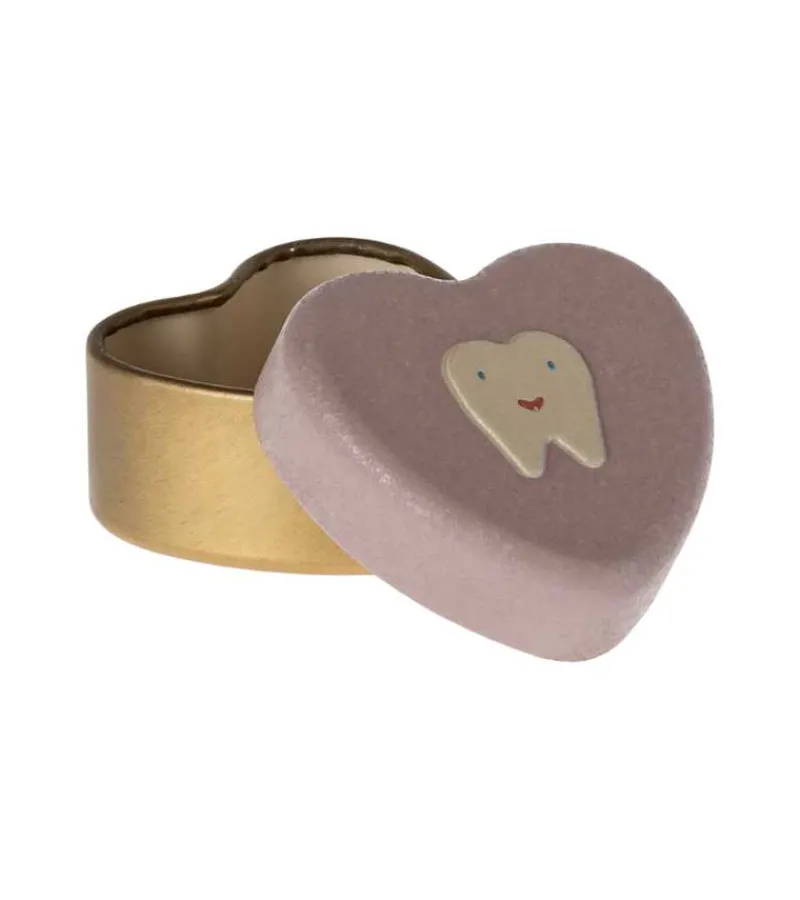 Dette lille fine metalhjerte er det perfekte sted at opbevare små mælketænder, og derved gemme barndoms minderne.