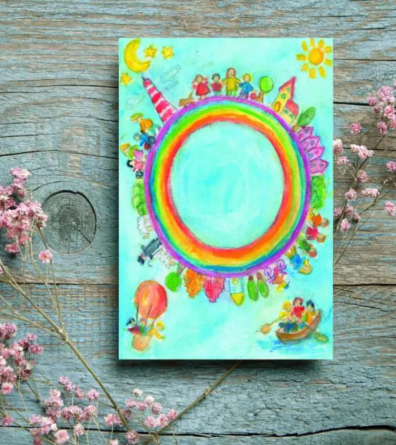 Motivet på dette farverige kunstkort er lavet af kunstneren Bernadette Höcker