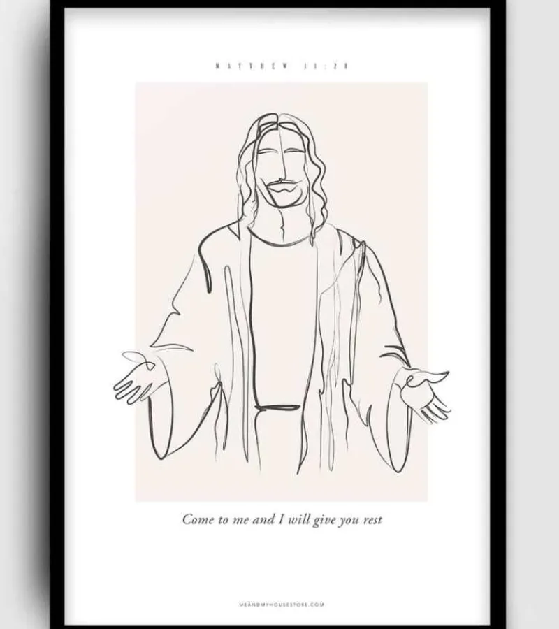 Flot hvid plakat med print af Jesus og tekst fra bibelen.