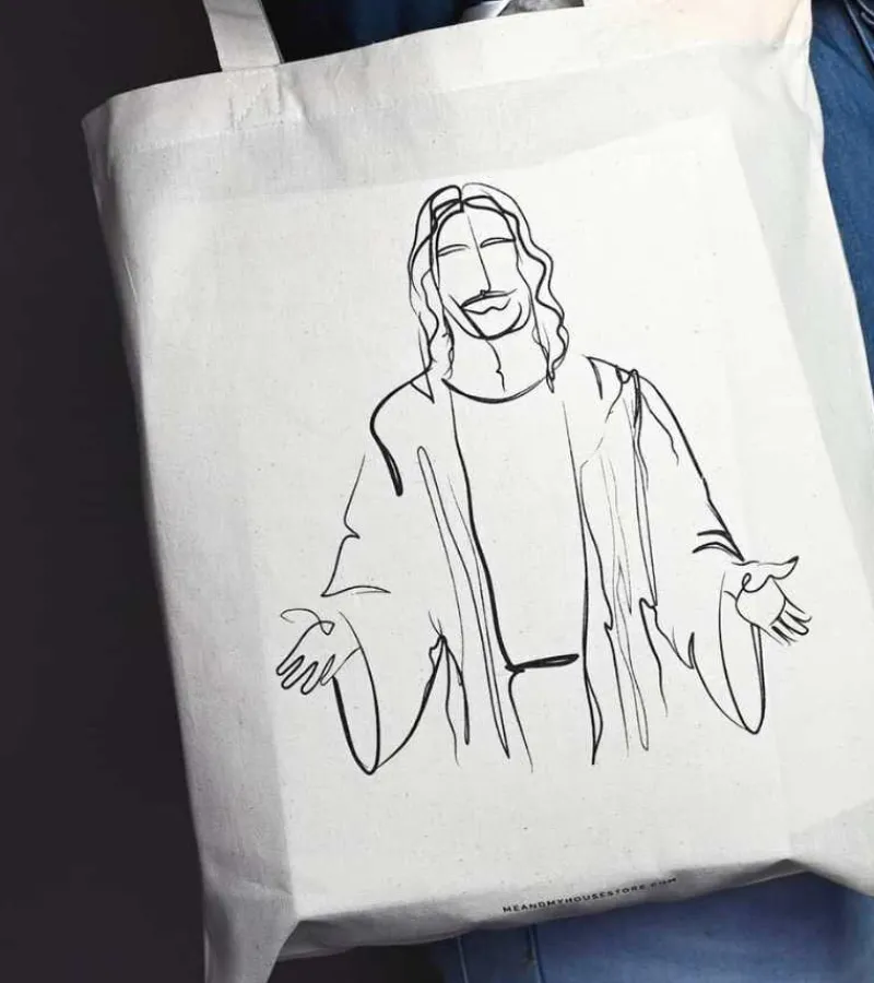 Smart hvid mulepose lavet 100% naturligt, med sort Jesus print.