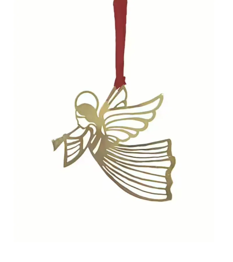 Lille fin flyvende engel i guldmetal, som passer perfekt til at hænge på juletræet.