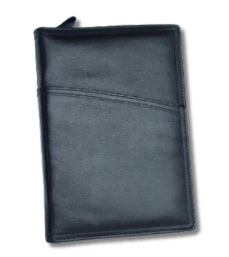 Sort Bibelomslag med lomme til eksempelvis: notesbog, kuglepen og mobiltelefon