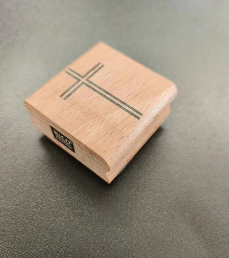 Flot og enkelt stempel med et kors. Korset betstår af 4 streger der tilsammen danner et kors.