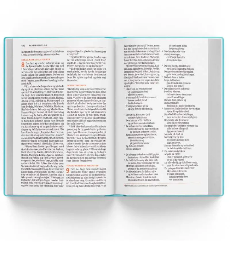 Kommer med et tyndt omslag, der er beregnet til at passe på bibelen i forsendelsen og ved transport.