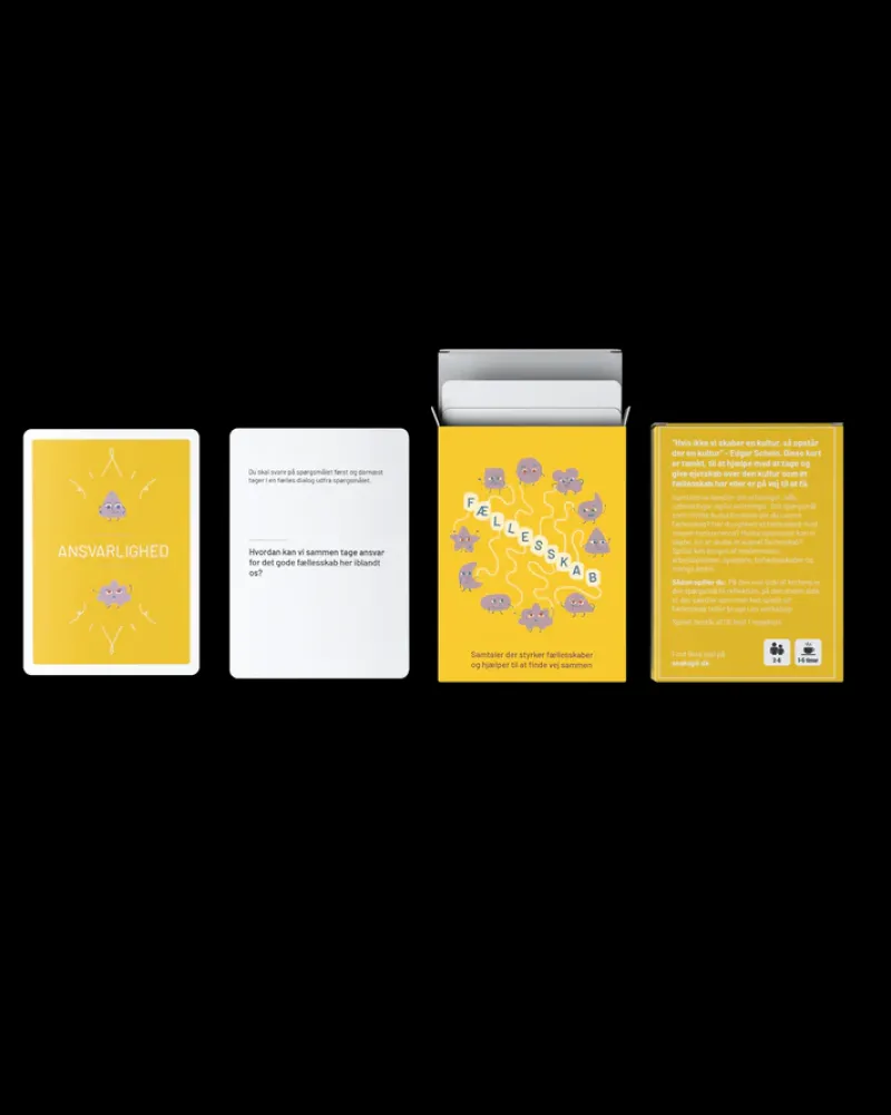 Disse kort er tænkt, til at hjælpe med at tage og give ejerskab over den kultur som et fællesskab har eller er på vej til at få. Samtalerne handler om erfaringer, håb, udfordringer og forventninger. På den ene side af kortene er der spørgsmål til refleksion, på den anden side er der værdier som man kan spejle sit fællesskab i eller bruge i en workshop.