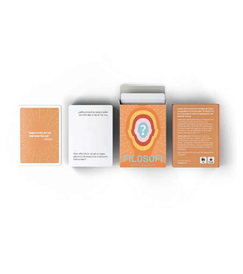 I dette sæt samtalekort bliver der lagt op til en udveksling af forklaring på livets store spørgsmål. Med hjælp fra nogle af historiens største tænkere, bliver der sat ord på mange af de helt essentielle aspekter af det at være menneske. Hvordan behandler vi hinanden? Hvad vil det sige at være til?