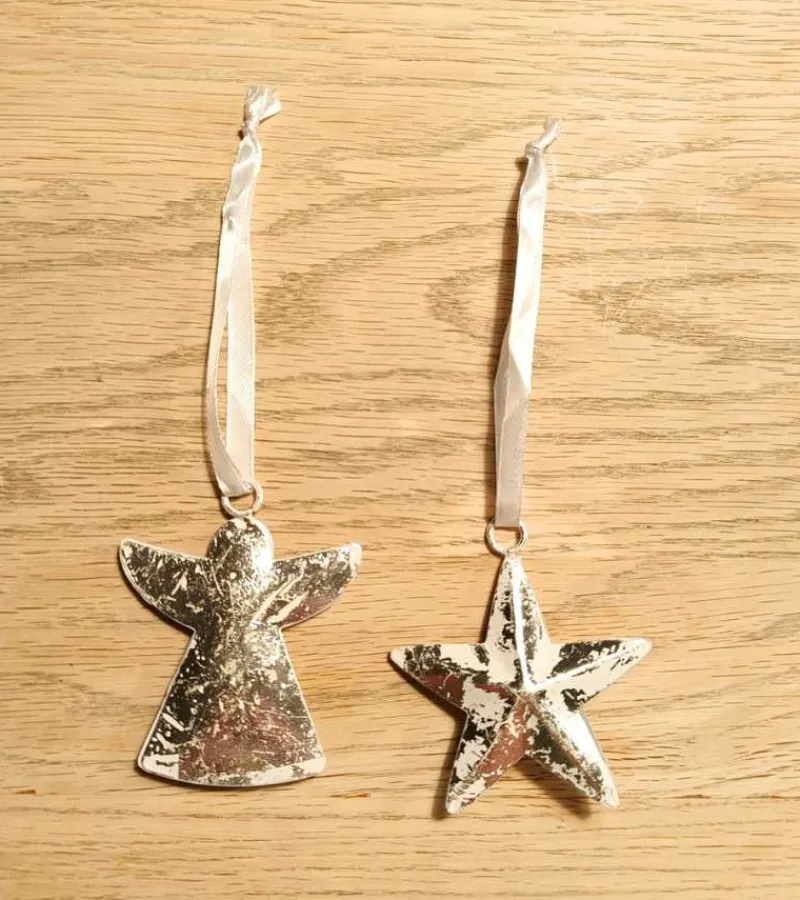 Simpel og pæn engel i hvid og sølv farve, med unik ridset look.
