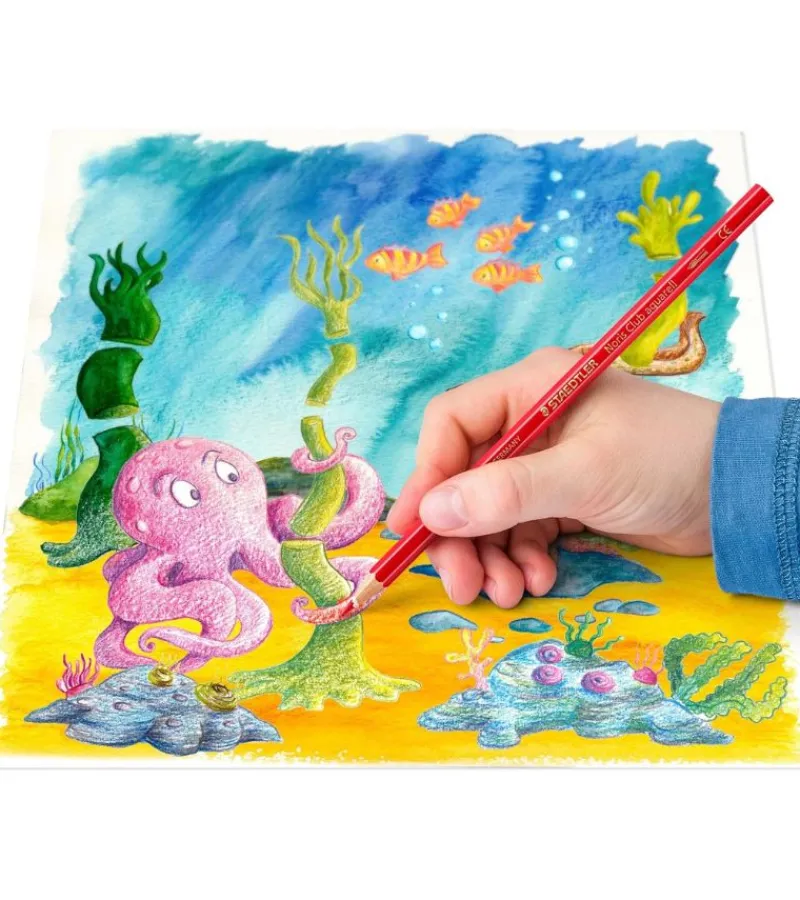 Tegn en tegning med disse farveblyanter, mal over tegningen med vand og se farverne blive klare og tydelige som vandfarver.