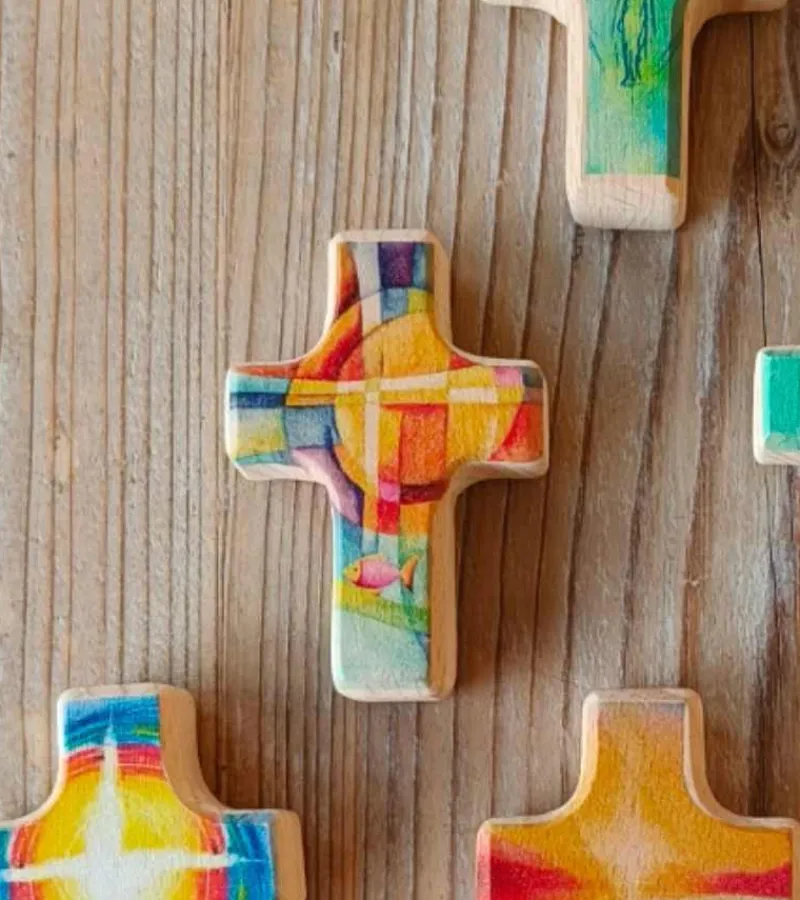 På trækorset er der både malet et kors og en fisk. Begge symboler er kendte i forbindelse med den kristne tro. Trykket på korset kan forstås på forskellige måder og have en særlig betydning for hver enkel. Korset kan ligge i lommen, eller ved ens arbejdsplads. Eller under hovedpuden.