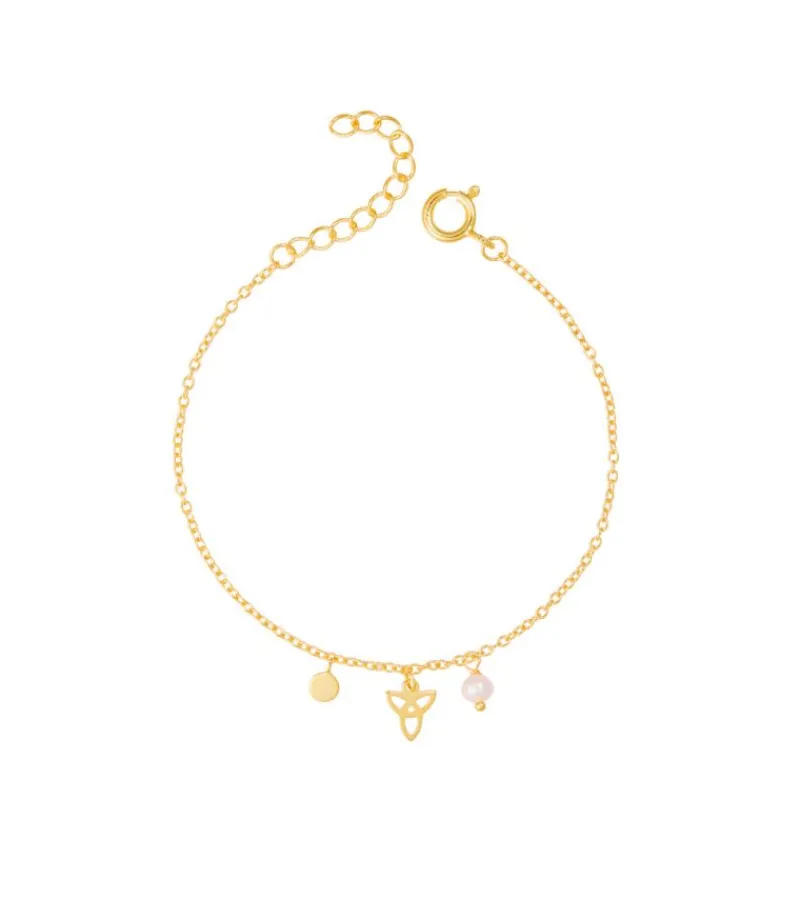 Skytsenglen beskytter, hjælper og er der altid. Sødt armbånd med et lille engle vedhæng og en lille ferskvandsperle.