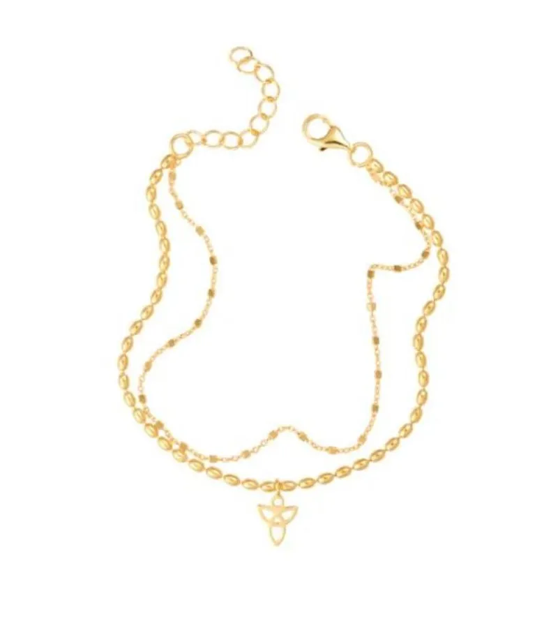 Det fineste armbånd med dobbeltkæde og en lille fin engel, der passer i serien med ørestikker og halskæde med en skytsengel.