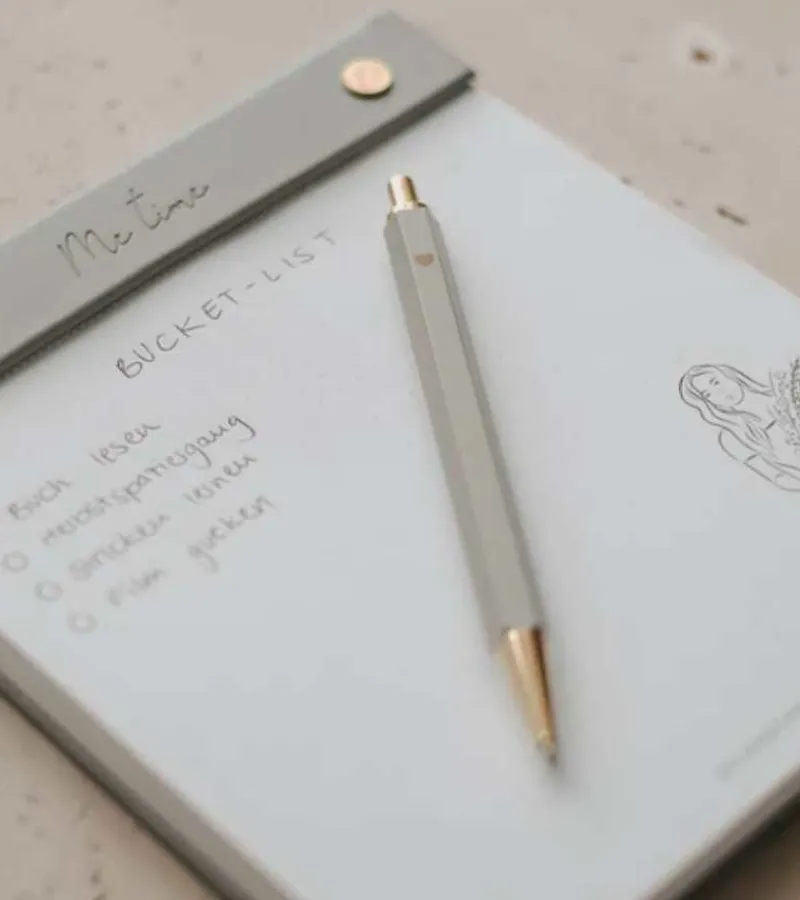 Fin og enkel grå kuglepen med et lille guld hjerte.