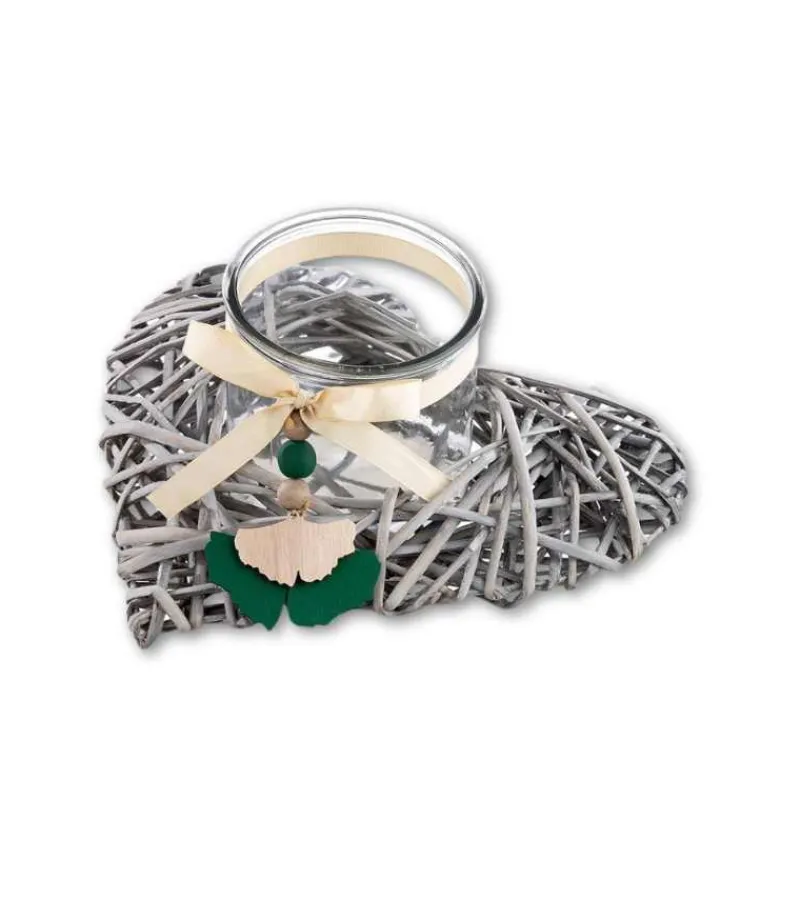 Dette hjerte i flettet pil, formet som et hjerte kan stilles på kirkegården. Der følger et glas med hvor du kan sætte et lys i.