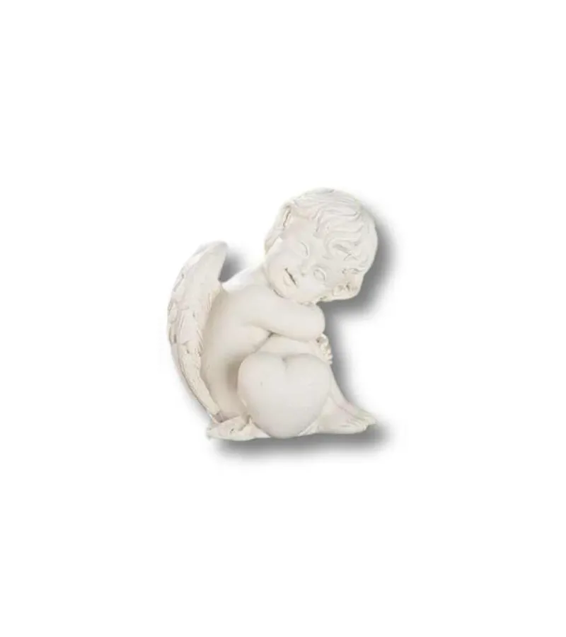 Lille figur af en siddende engel der har hovedet i armen.