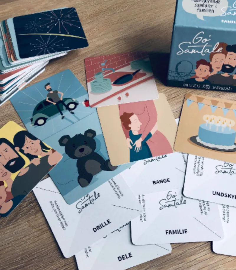Træk et kort og styrk jeres forståelse og sammenhold i familien ved at lytte til hinandens tanker, følelser og holdninger. Skaber snakke om alt fra selvtillid til sociale medier, tålmodighed og skærmtid.