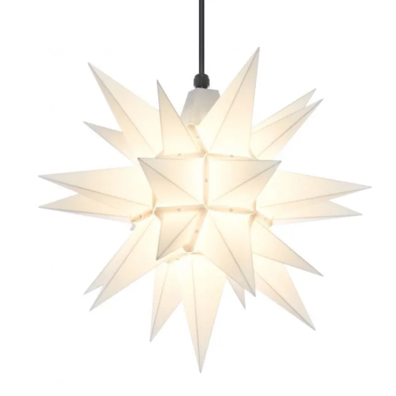 Plast stjerne er fantastiske at hænge op udendørs. Til det skal du bruge en udendørsledning Herrnhuter 5 meters udendørs kabel med LED pære og stik