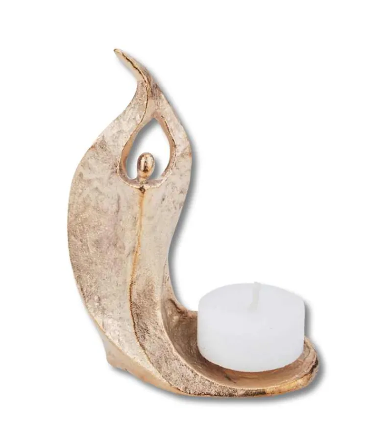 Denne engel er virkelig smuk. Den er lavet i bronze og ved siden af er der gjort plads til at stille et fyrfadslys.