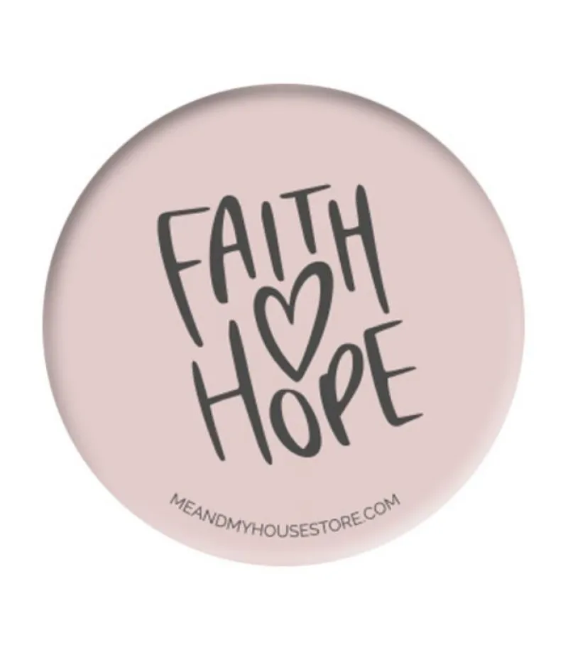 Badge med teksten: Faith ♥ Hope
