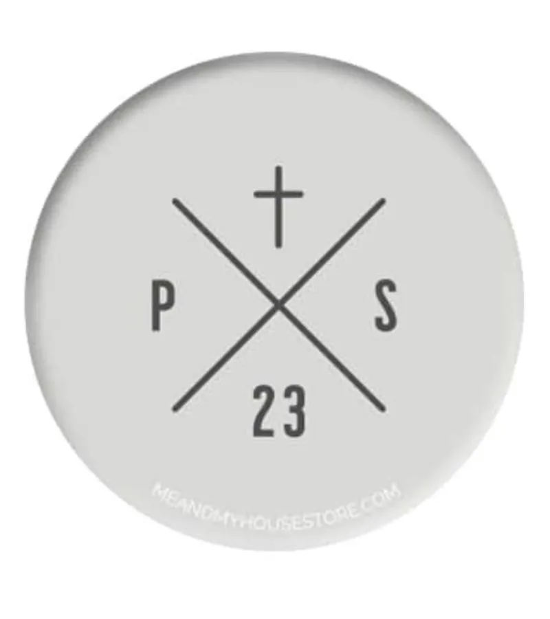 Fint badge med et godt budskab. På badgen står der Salme 23. I salme 23 står der at Jesus er vores hyrde – det er en god reminder at bære med sig på skoletasken eller trøjen.