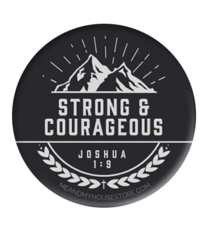 Fint badge med et godt budskab. Badgen minder om, at vi kan være stærke og modige fordi Gud er med os – det er en god reminder at bære med sig på skoletasken eller trøjen.